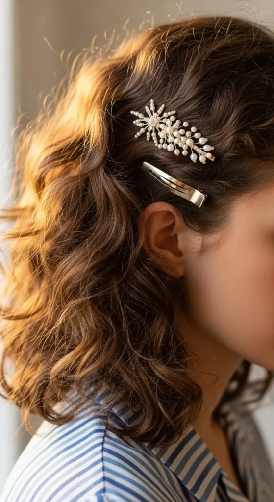 Clips, pins, and headbands add instant style. Place them near the temples or sides. Cheap accessories work just as well. DIY idea: Use a scarf as a headband for a creative touch.