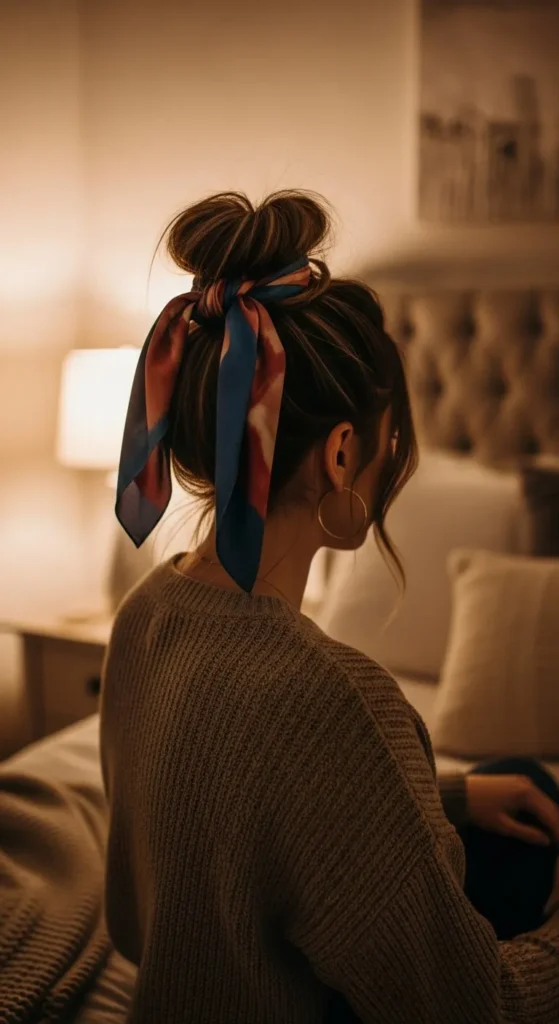 7. Scarf Wrapped Messy Bun