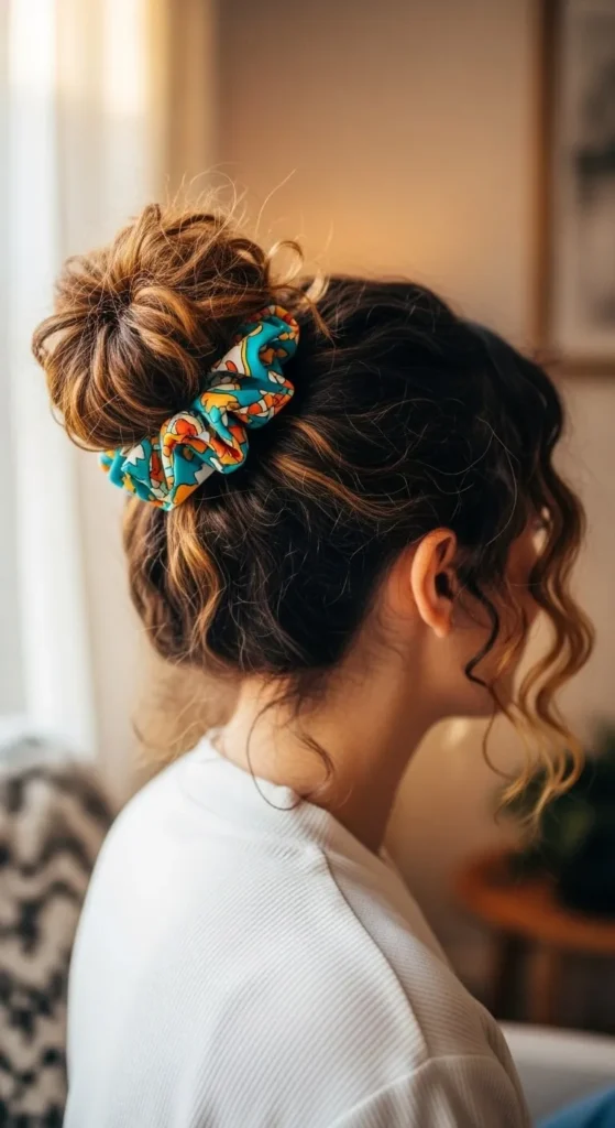 4. Scrunchie Styled Curly Bun