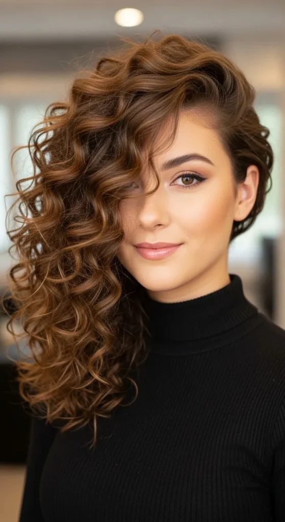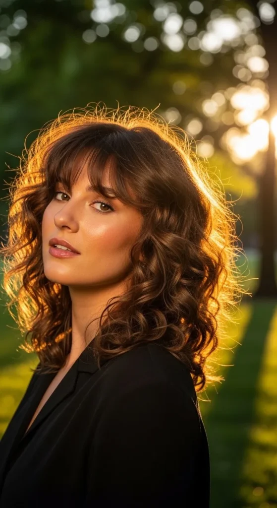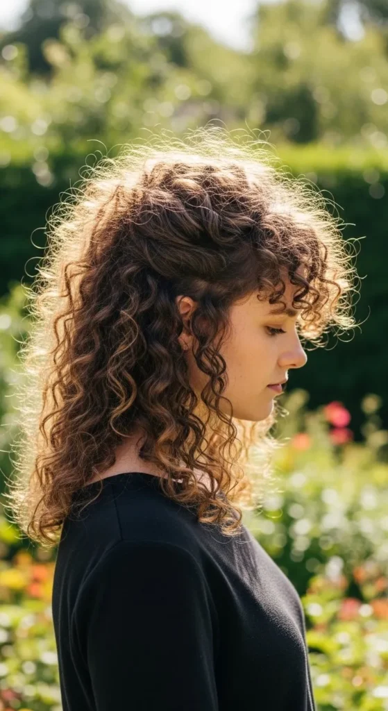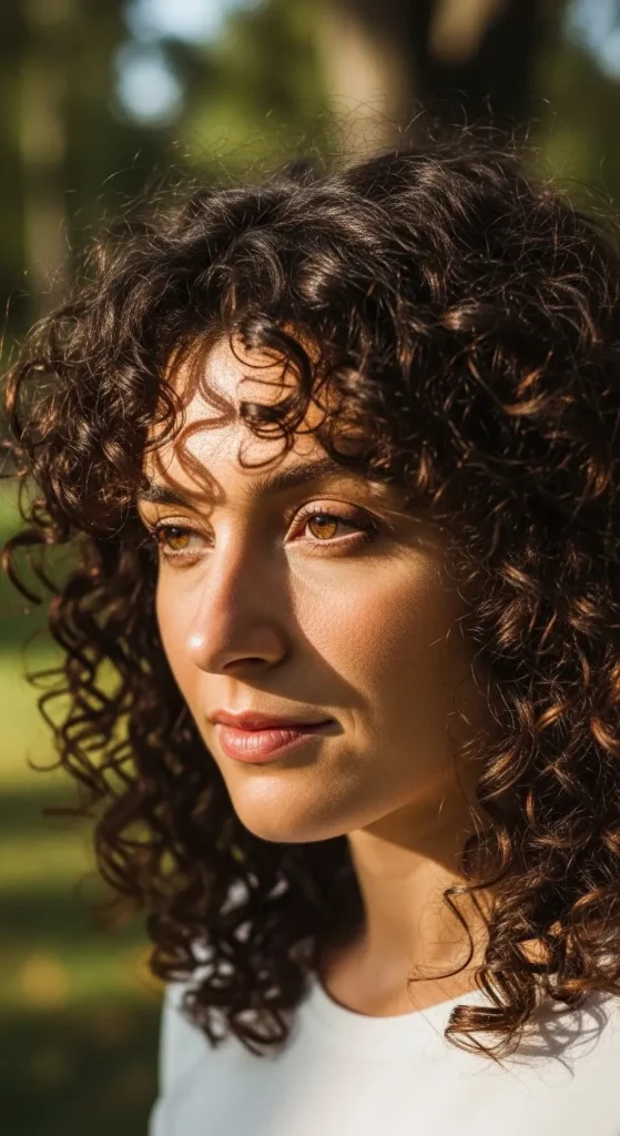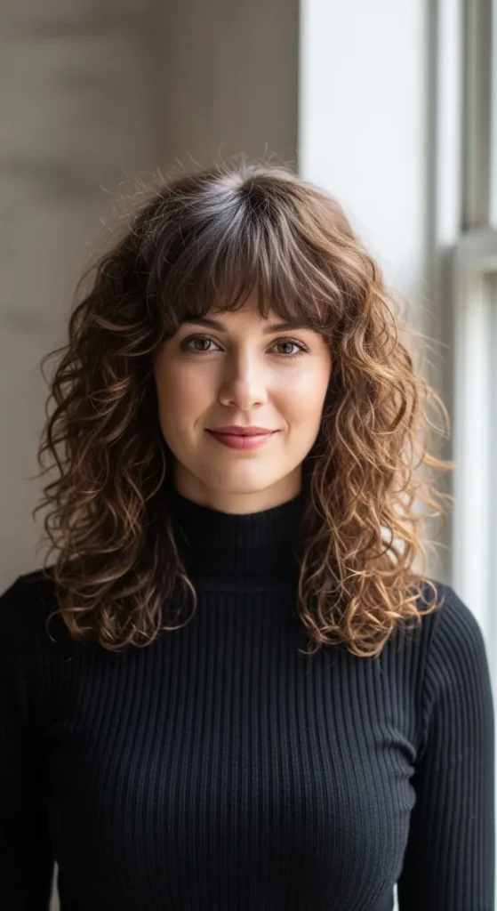 Curly bangs bring attention to your eyes and add personality. Combine with layers to prevent the hair from looking heavy. After washing, apply a light curl cream and let the bangs air-dry or use a diffuser. You can trim bangs yourself carefully or visit an affordable stylist. Layers reduce tangles and make curls easier to manage. This style works for short and medium-length hair and gives a playful, natural vibe.