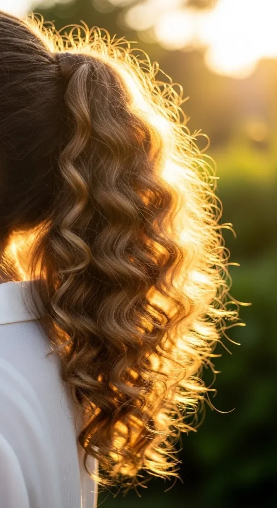 A low curly ponytail is simple but stylish. Gather your hair at the nape and secure with a soft elastic. Pull a few curls loose to frame your face. For extra volume, gently shake curls before tying. This style is ideal for work or errands. You can add a scrunchie or ribbon for a subtle accessory. It’s easy to do, requires no expensive products, and keeps curls looking lively throughout the day.
