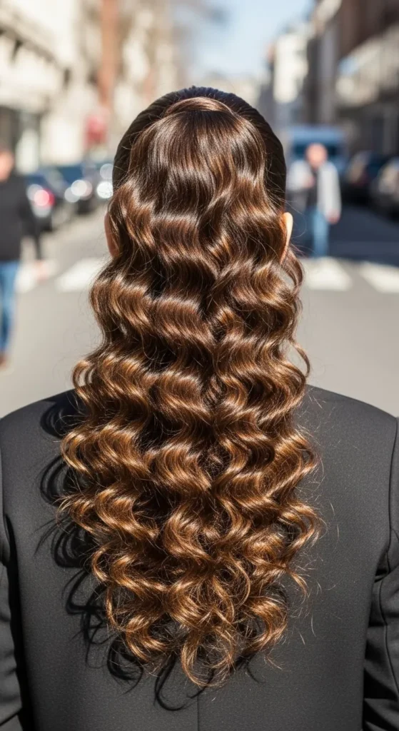 A high ponytail lifts the face and keeps curls off your shoulders. Secure at the crown and let the curls bounce freely. For extra flair, wrap a small hair section around the elastic. This is quick, easy, and budget-friendly. Shake curls gently before securing to enhance volume. Perfect for workouts, errands, or casual outings.
