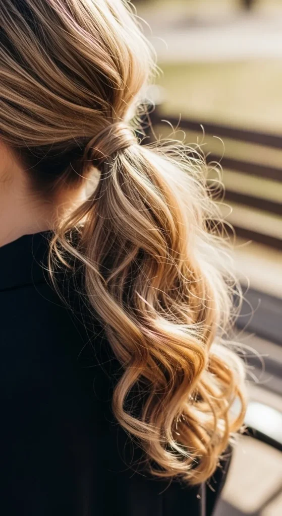 Side ponytails are simple and chic. Pull hair over one shoulder and secure with a soft elastic. Let a few curls frame the face. Quick and easy for daily wear. Add a ribbon or scrunchie for personality. Perfect for casual or semi-formal occasions without spending extra.