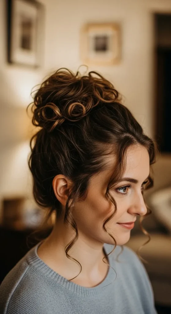 23 Effortless Messy Curly Bun Styles That Look Perfectly Undone