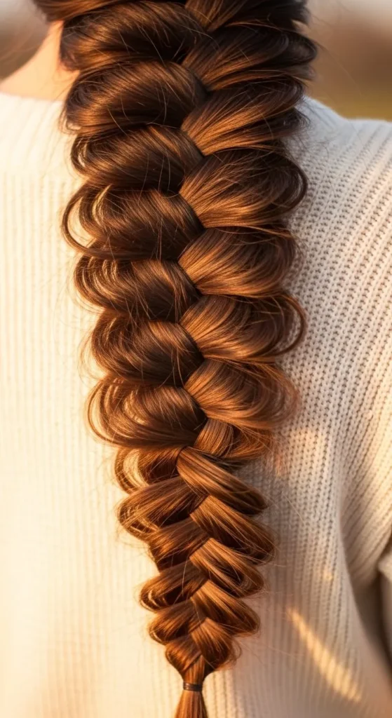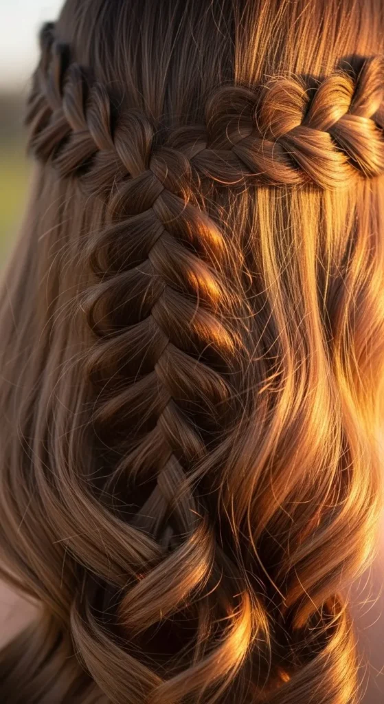 This braid gives you that dreamy, fairytale touch. Start a regular braid at one temple, drop one strand every few weaves, and add a new piece of hair from above. It looks complex but is surprisingly easy once you practice. Add soft curls to finish the look. Pair it with pearl earrings and a light shimmer makeup for the perfect “princess” moment.