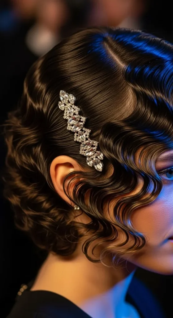 Go vintage with defined curls pinned neatly around your face. Use a small-barrel curling iron and set curls with clips while they cool. Once set, remove pins and spray lightly. Add a rhinestone pin or side comb for a touch of drama. It’s glamorous, bold, and totally red-carpet-worthy.