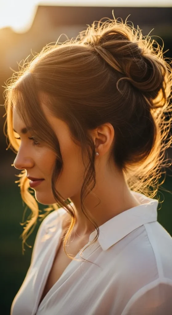 Start with a French braid from your forehead to the crown, then gather the rest into a bun. It’s elegant and secure. Add a light spritz of hairspray to hold it all night. You can tuck in some delicate hair charms for a sparkly finish. A fun DIY if you’re going for a mix of classic and modern.