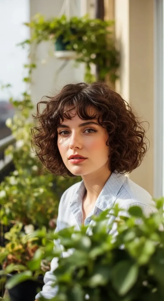 The curly French bob sits near the jawline and often includes soft bangs. It frames the face and makes curls appear thicker. Apply curl cream on wet hair and shape bangs with fingers. Avoid brushing when dry. Trim bangs carefully at home and use low-cost aloe gel mixed with conditioner for daily styling.