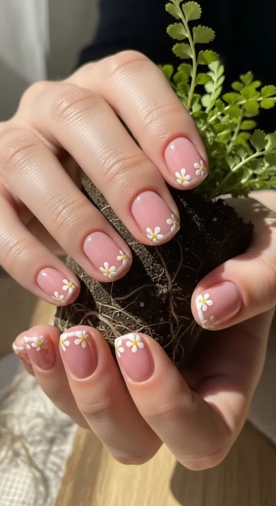 Tiny flowers bring soft beauty to French nails. Use a fine brush to draw small flowers on the tips. Keep colors simple for a clean look. Short nails prevent designs from looking crowded. Seal with top coat. This style is great for casual days and spring looks. It’s easy to try at home.