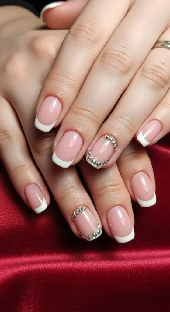 15. French Tips with Tiny Gems