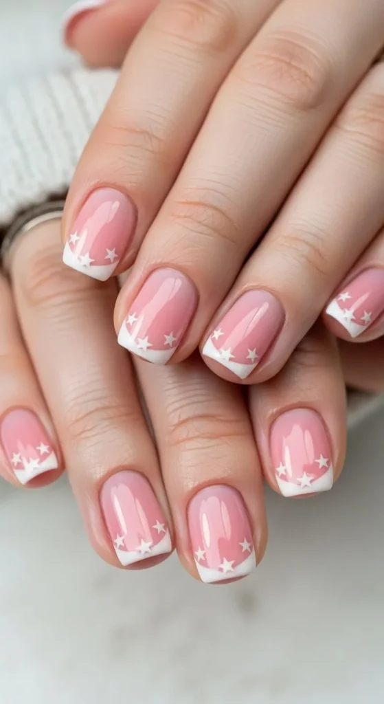 Tiny stars add a playful feel. Use a stamp or brush to draw small stars on tips. Keep designs minimal. Short nails suit this style. Add top coat for protection. It’s fun and easy for DIY lovers.