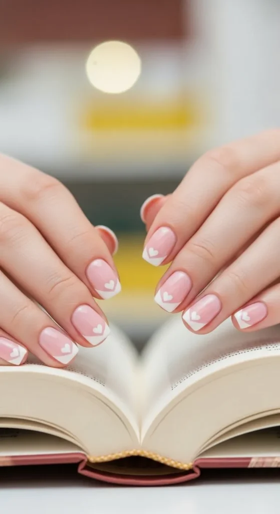 Heart-shaped tips bring a cute and romantic feel. Paint a soft base, then use a toothpick or thin brush to draw small hearts at the tips. Keep the design tiny for balance. Short nails suit this style well. It’s perfect for dates and special days. Use clear polish to protect the design. This is an easy way to personalize your nails at home.