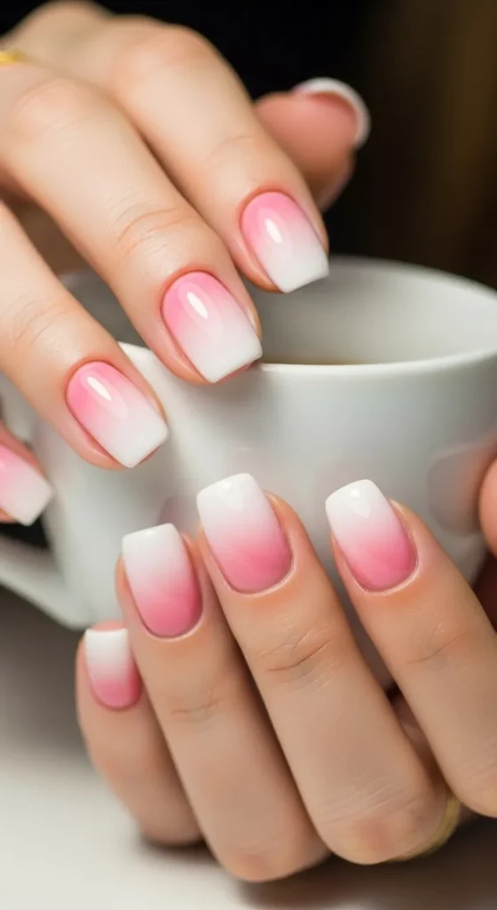 Ombre French nails give a modern twist to the classic design. Use a sponge to blend pale pink into soft white tips. The transition should look smooth and gentle. Short nails make this style look neat and balanced. Start with a base color, let it dry, then dab white polish lightly on the tips. Finish with a top coat to blend everything together. This look suits both casual and formal days. You can also try pastel shades like lavender or peach. Minor blending mistakes are less noticeable, which makes this great for DIY lovers. Keep cuticles moisturized for a clean finish.