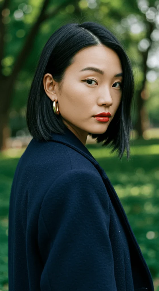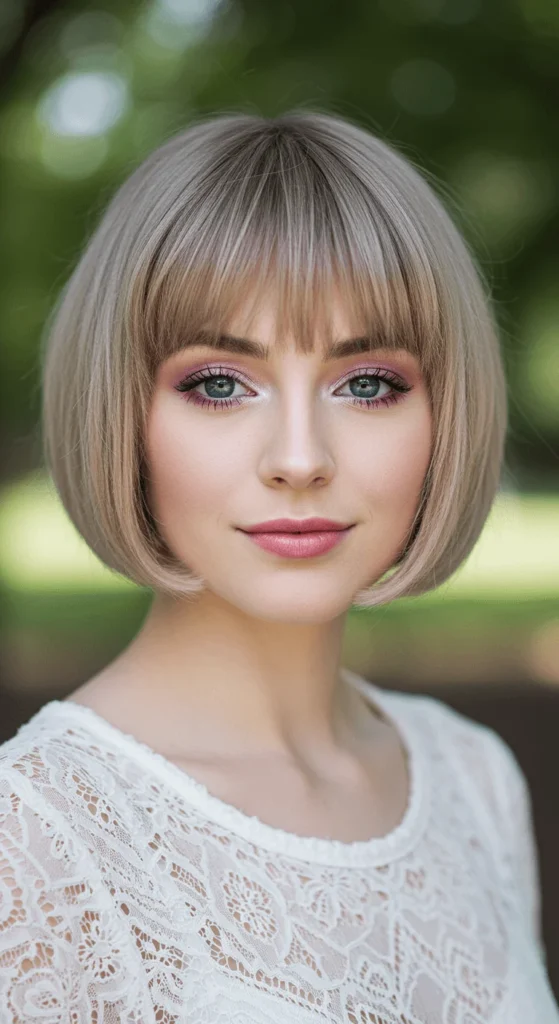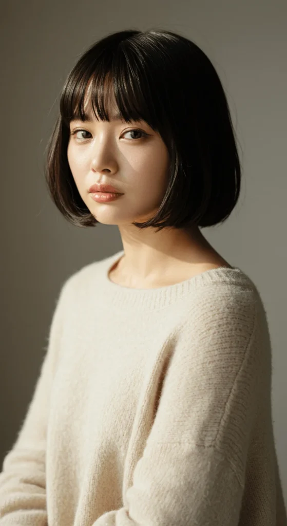 A blunt mini bob gives sharp definition and structure. It’s a go-to for thin hair because the ends look fuller. You can easily maintain the shape by trimming it yourself every few weeks. For an icy shine, rinse your hair with cold water after conditioning — a simple, zero-cost trick.