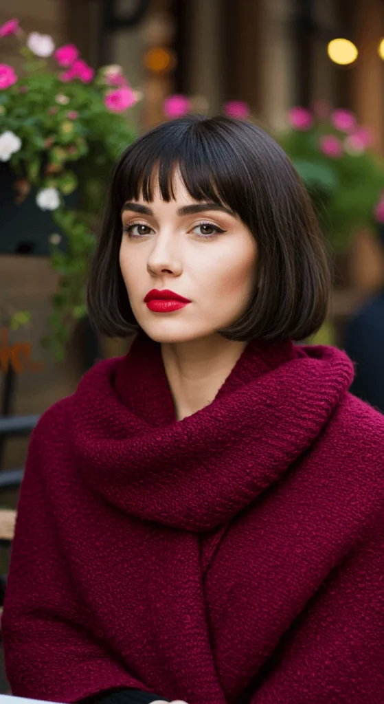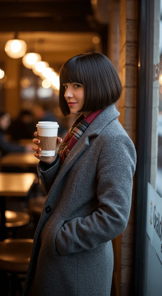 This timeless cut gives you effortless charm with very little work. The French bob is usually chin-length with slightly curved ends. You can style it sleek for dinners or tousled for casual days. A few drops of shine serum help it look polished in cold air. If you’re on a budget, use a small flat iron and trim the ends at home with sharp shears. It’s the easiest way to look chic in minutes.