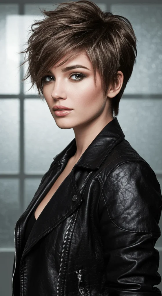 The short shag is all about airy layers. It adds movement even in thick sweaters and coats. Blow-dry upside down for volume, or air-dry for a messy charm. Use a teasing comb for a fuller crown look. It’s a perfect mix of casual and cool without daily effort.