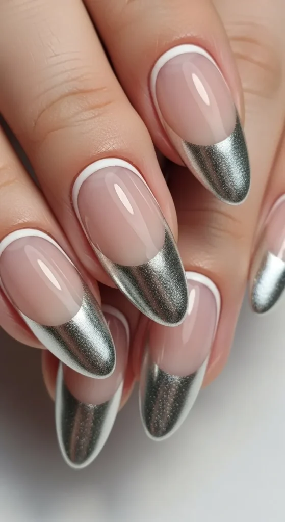 Shiny silver French nails are everywhere right now. They feel clean, bold, and modern without being loud. If you love classic French tips but want something cooler and more eye-catching, silver is the answer. It works for short nails, long nails, square shapes, or almond styles. It also fits everyday outfits and special events. The best part is that you do not need a big salon budget to get the look. With simple tools and a steady hand, you can create sleek silver tips at home. Below are 20 ultra modern ideas you can try and customize.