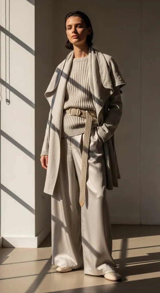 Using one color family keeps outfits simple. Mix textures like knit, denim, and cotton. Budget tip. Neutrals repeat easily. DIY tip. Layer different fabrics you already own. This look feels calm.