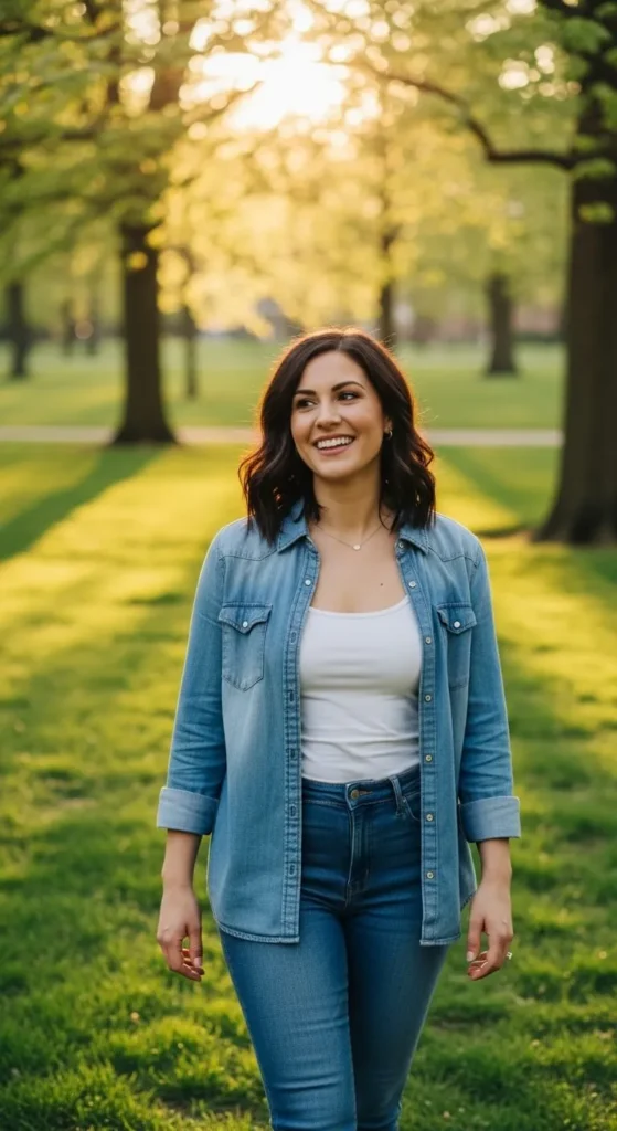 Wearing a button-up shirt open over a tank feels relaxed and practical. Choose a lightweight shirt in cotton or linen. This layering trick works with jeans, trousers, or skirts. Leave the shirt loose and natural. Budget tip. Men’s sections often have affordable button-up shirts. DIY tip. Tie the shirt ends at the waist for a new shape. This outfit works for errands and casual weekends.