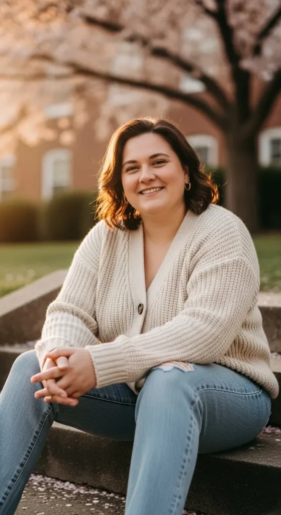 A soft cardigan and straight jeans create a calm, wearable outfit. Choose a cardigan that feels light. Button it halfway or leave it open. Add a simple top underneath. Budget tip. Look for cardigans at end-of-season sales. DIY tip. Swap buttons on an old cardigan. This outfit suits cool mornings and relaxed plans.