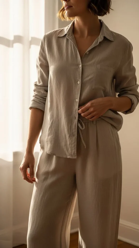 A linen button-up and wide-leg pants are perfect for breezy spring days. Choose light, natural fabrics for comfort. Roll up sleeves and pant cuffs for a casual feel. Pair with slides or espadrilles. Affordable linen pieces are easy to layer. Minimalist jewelry like thin rings or small earrings keeps the focus on clean lines. DIY fabric dyeing can personalize the look while staying budget-conscious.