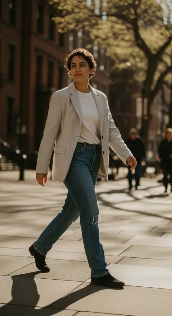 Relaxed blazers are everywhere this spring. The shape feels looser through the shoulders and body, making them easy to wear all day. You can style one with jeans and sneakers for casual plans or layer it over a basic dress. Thrift stores often carry older blazers that already have this softer shape. Roll the sleeves to avoid stiffness. Look for lightweight fabrics so it works even on warmer days. A neutral shade like beige or gray pairs with most outfits. If buying new feels pricey, check men’s sections for oversized options. Add a simple belt bag or canvas tote to keep the look practical and modern.