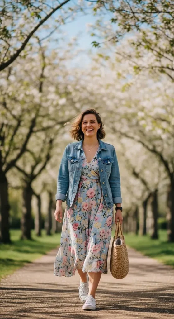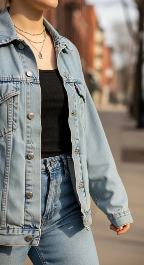 Denim jackets remain reliable for spring layers. Slightly oversized fits feel current. Wear over dresses or tees. Thrifted denim works well. This layer suits cool mornings and evenings.