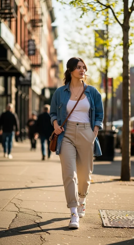 Button-down shirts double as light layers this season. Worn open over tanks or tees, they feel casual and practical. Cotton or linen fabrics work best for warmer days. Check thrift shops for men’s shirts in stripes or solids. Roll the sleeves and leave a few buttons undone. This look works with jeans, skirts, or shorts, making it very flexible.