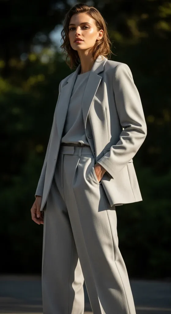 Light gray feels modern and calm in spring. Choose relaxed tailoring to avoid stiffness. A gray blazer with straight-leg pants works well with a simple tank underneath. Buying separates instead of a full suit saves money. Wrinkle-free fabric matters here, so steaming is key. Gray or white shoes keep the look cohesive and wearable for work or casual days.