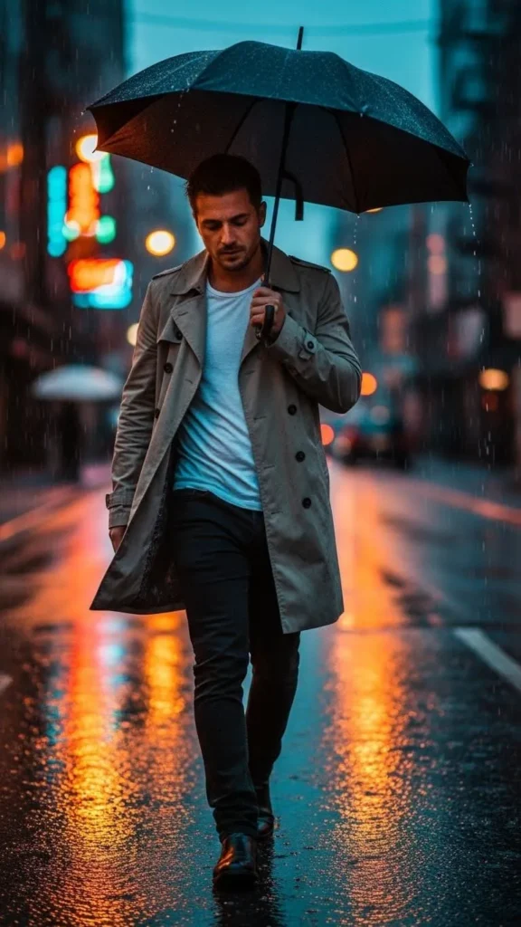 A light trench coat over a T-shirt keeps you clean and polished on cooler spring days. Pair with dark jeans or chinos. Stick to neutral shades like beige or khaki. Casual sneakers or loafers work well. Affordable trench coats are available in lightweight fabrics. Roll sleeves slightly for casual flair. Add a simple watch or sunglasses for detail. Perfect for rainy days, city walks, or casual meetings. The trench adds structure without feeling heavy.