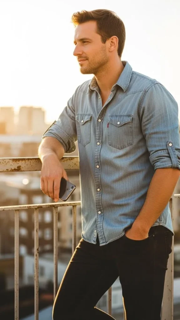 17. Chambray Shirt and Dark Jeans