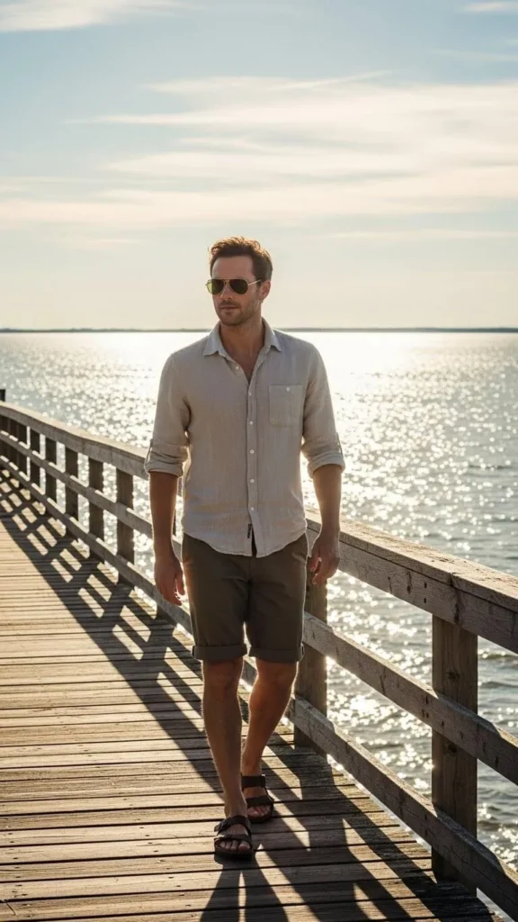 3. Linen Shirt and Khaki Shorts