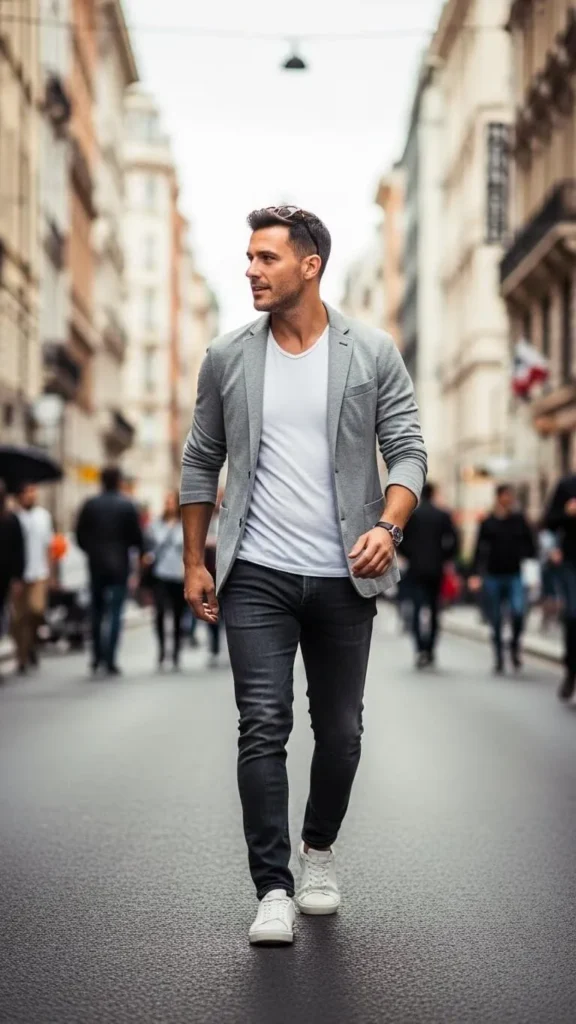 A casual blazer over a T-shirt strikes the perfect balance of polished and easygoing. Stick to neutral blazers like grey or navy. Pair with dark jeans or chinos. Sneakers or loafers complete the outfit. Budget blazers are often found at outlet stores or online sales. This combo works well for spring evenings, dates, or casual office events. Keep accessories minimal—maybe a watch or subtle bracelet. Roll sleeves slightly if you want a relaxed feel. The key is simple color coordination and clean lines.