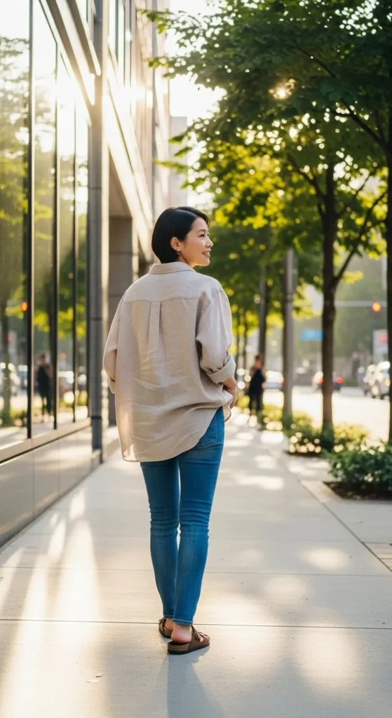1. Oversized Linen Shirt with Slim Jeans