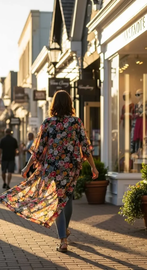 A flowy kimono adds movement and color to basic outfits. Wear it over a plain tee and skinny or straight jeans. Sandals or flats work well. You can turn a large scarf into a kimono-style layer by stitching the sides lightly. This is an easy way to reuse items you already own.