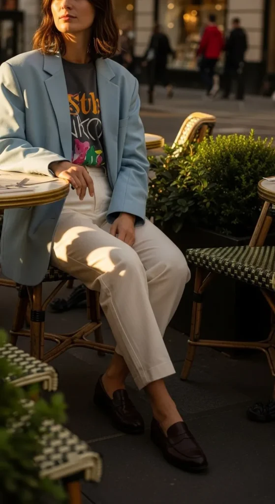 2. Baggy Blazer over a Graphic Tee