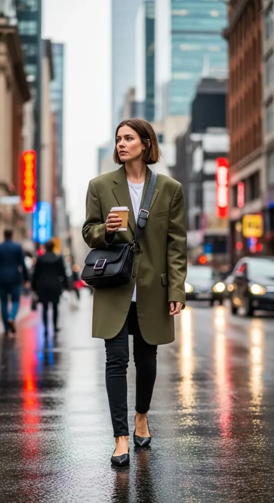 A long blazer creates a sharp outline while staying relaxed. Pair with skinny jeans and a simple tee. Flats or loafers keep it practical. Borrowing or thrifting a blazer in a larger size is an easy way to get this look.