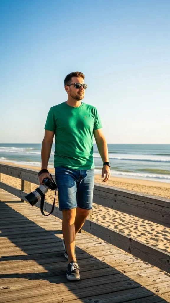In warm cities, a green tee with shorts feels just right. Choose cotton shorts that let air move. White sneakers or sandals both fit. This outfit suits daytime events and backyard parties. You can cut the sleeves slightly if you like a custom feel. The tee can be plain and cheap from any store. Add sunglasses instead of heavy layers. Keep a light shirt in your bag for evening. This look is simple to wash after a long day. It shows that St Patrick’s style can be easy and cool. No need for thick clothes when the sun is bright.