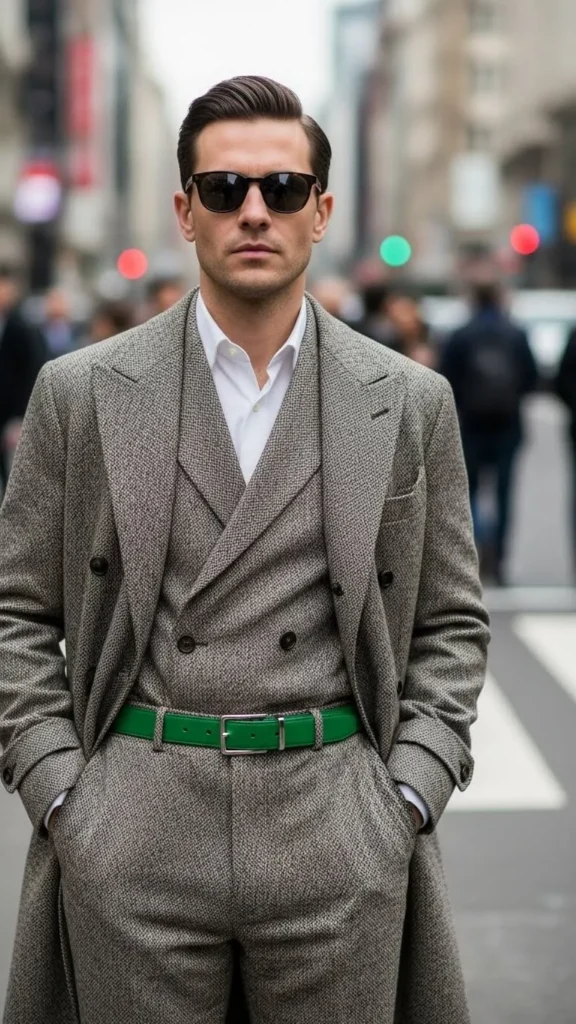 A green belt can change a normal outfit in seconds. Wear it with jeans and a plain shirt you already love. Belts are cheap and easy to swap with friends. This idea suits men who prefer quiet style. Keep shoes in brown or black to match. The belt can be fabric for comfort. You can even paint an old belt with safe color at home. This tiny change shows holiday spirit without effort. After the day ends, the belt still works for casual wear. Simple actions create smart results.
