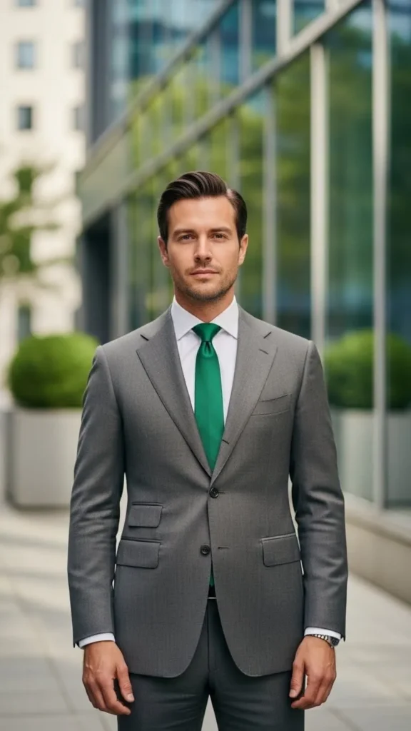 8. Green Tie With Neutral Suit
