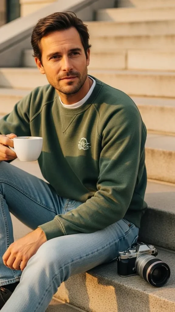 A green hoodie with joggers is perfect for a laid back St Patrick’s Day at home or a casual meetup. The hoodie can be plain with no prints so you can wear it again any day. Gray or black joggers keep the focus on comfort. This outfit is great if you plan to watch sports or cook with friends. Budget tip: buy a basic hoodie and add your own small iron patch. Sneakers or slide shoes both fit the relaxed tone. Keep the hoodie slightly loose so you can move easily. If the weather gets warm, tie it around your waist. The look feels honest and easy, not forced. You can layer a thin tee under it for extra warmth. Many men already own these pieces, so no shopping trip is needed. Comfort can still look good in photos.