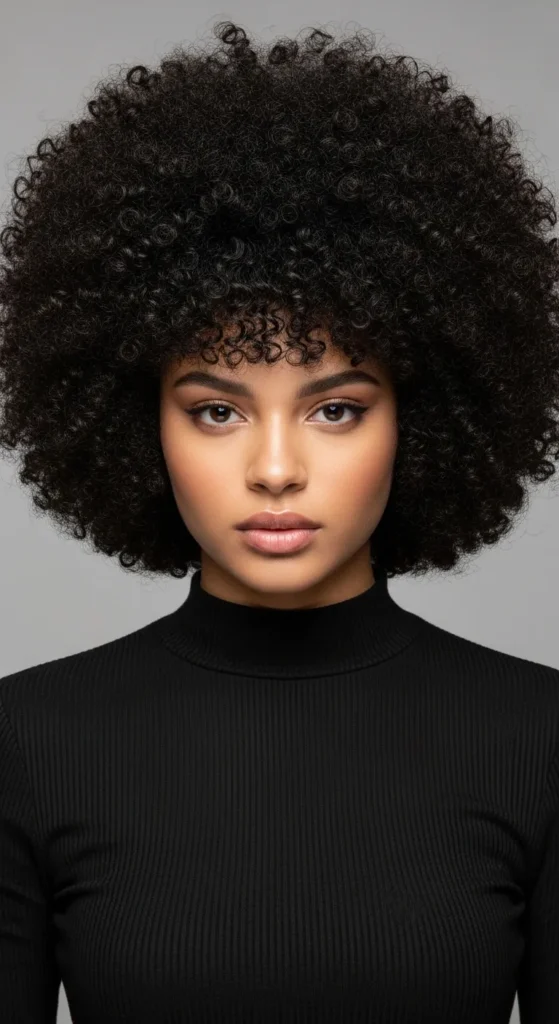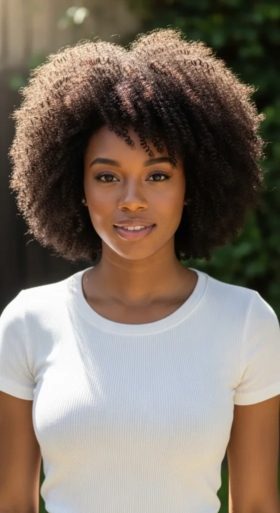 The classic rounded afro highlights your natural curl pattern and gives your hair a balanced shape. Start with clean, moisturized hair and apply a light leave in conditioner. Let it air dry or use low heat. Once dry, gently lift the roots with a pick. Use a spray bottle with water and conditioner to refresh daily. Sleep with a satin scarf to reduce dryness. Trim ends at home every few months to keep shape. Avoid heavy oils that flatten curls. This style works for school, work, and casual days. It shows confidence and natural beauty with very little effort.