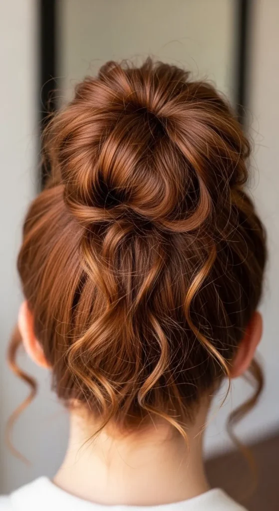 Create loose bun and let ends hang. Use soft bands. This relaxed style protects hair and suits busy days.