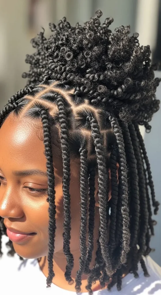 Mini twists protect hair and save time. Install on damp hair with cream. Refresh with water spray. Separate after one week for more fullness. Wear scarves or headbands for variety. This style lasts weeks and reduces daily styling.