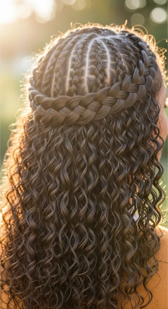 19. Tight Curl Braided Crown