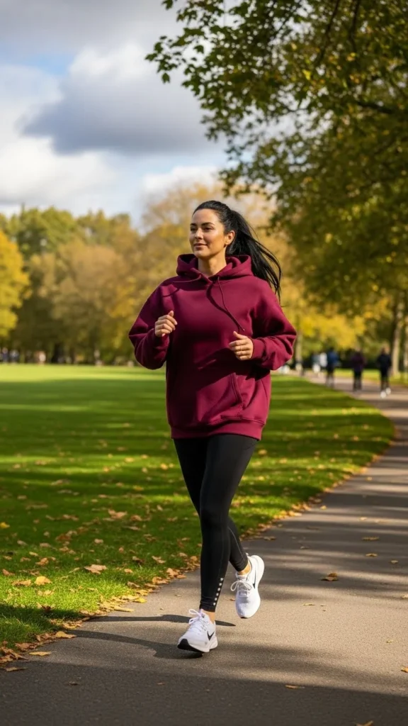 7. Burgundy Oversized Hoodie and Leggings