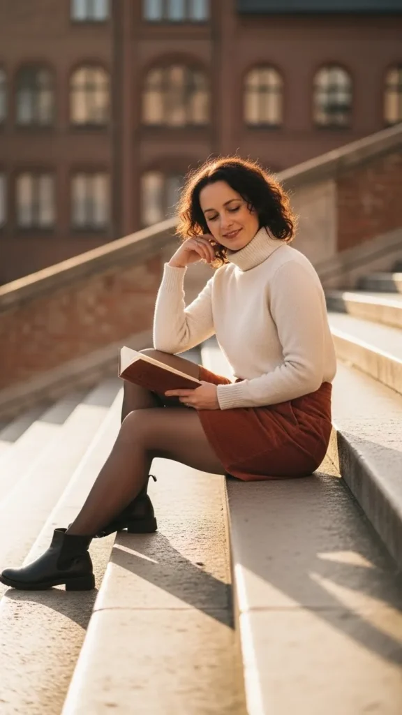 5. Cozy Turtleneck with Corduroy Skirt