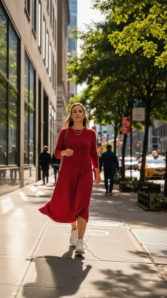 15. Red Sweater Dress and Chunky Sneakers