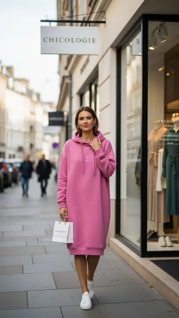 22. Pink Hoodie Dress with White Sneakers