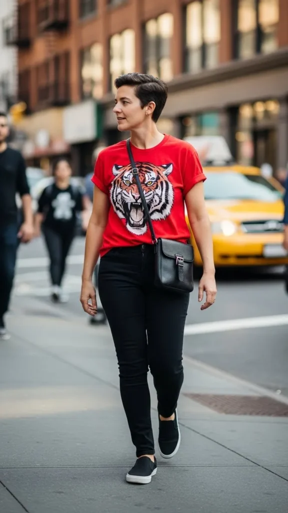 2. Red Graphic Tee with Black Jeans